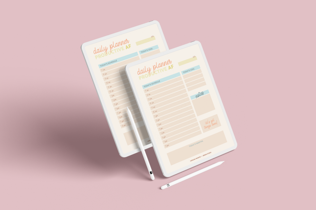 Feel like your days aren't as productive as they could be? Introducing the Daily Planner to be Productive AF! This hourly planner is everything you need! Now you can organize your days in a positive and cute way, set up your goals and take notes. It is a digital file that comes in A4 size for printing and suitable for Goodnotes on the iPad! What are you waiting for? Grab your FREEBIE now!